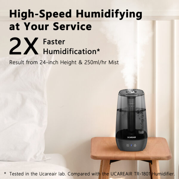Adjust mist output and direction by pressing the power button and rotating the nozzle 360°. This cool mist humidifier for bedroom will evenly distribute moisture throughout your room. Humidifier for home offers a timer setting for 1, 3, or 6 hours, which not only saves energy, but also lets you control the humidifier at your convenience.